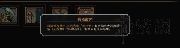 进门派之后把所有人都看一遍,找个资质好的异性,每个月有多余时间可以和她聊天培养一下好感度,还有记得收村里的钱。在门派修炼还有个好处,如果你是欧皇的话,掌门还可能教你武功,就像这样: