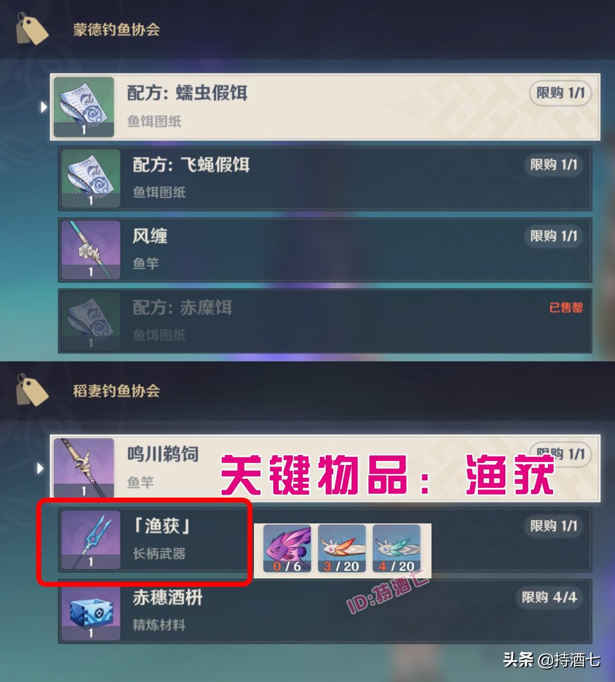 其中,钓鱼者主要是冲渔获来的,这是一把四星的高属性长柄武器,适合没有专武的雷电将军使用。