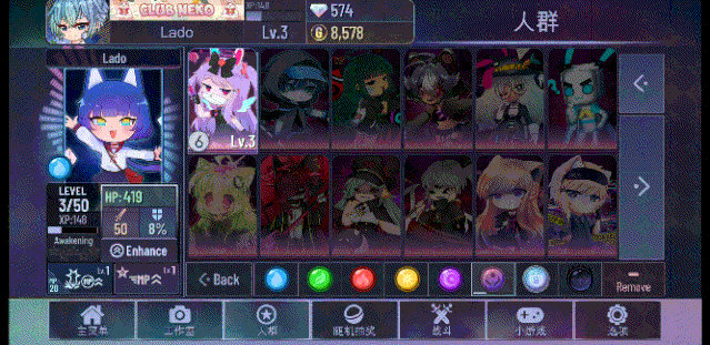 因此游戏主题在除了Gacha作为基础设定之外,还有Club奠定游戏基本剧情走向。在欢乐的音乐之中,玩家将操纵自己创建的动漫角色,和其他玩家一起加入到聚会之中。
