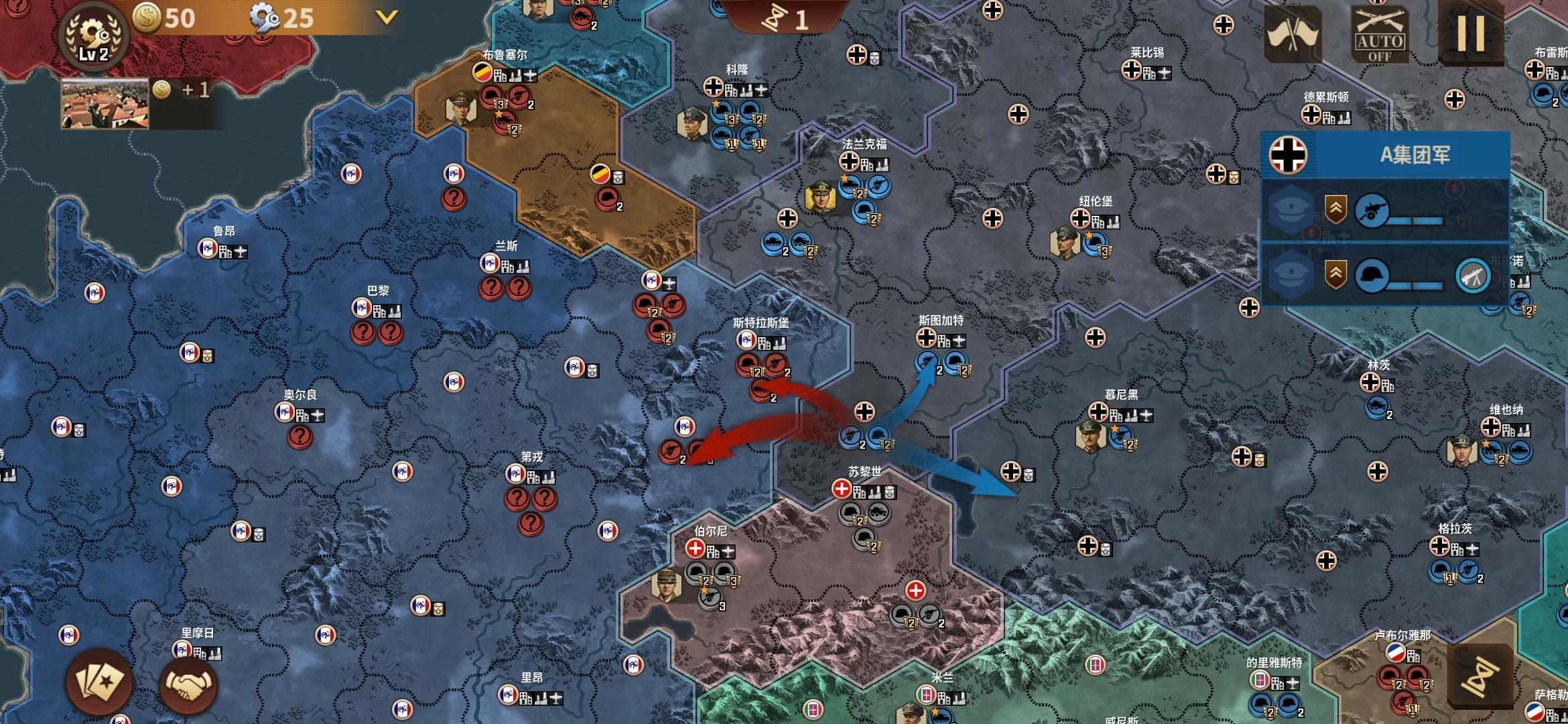 关于战役方面,小编就不多赘述了(反正不好玩),本人认为策略性最高的是集团军模式。战术上几乎不需要,但需要极高的战略眼光。