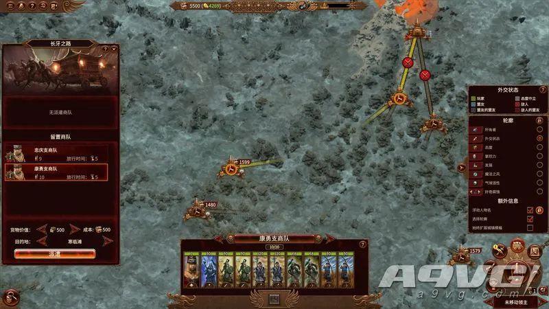 震旦派系独有的长牙之路系统,有点类似《特洛伊》远征的概念,但在玩法上却走向了两天截然不同的岔路,派遣长牙之路和正常的部队一样会出现在对局地图上,并按照规定路线前进,每当回合开始,商队都有概率会遭遇敌人,伴随危险而来的还有各处驿站里多样的事件和抉择选项,类似全新的盟友、全新的路线等等,比较有意思的是尽管流程里玩家并不能实际操作长牙之路部队,但却可以通过他们行进的方向获得对应区域的视野,也算是变相地提供了一些地图情报。到了中后期,你的对手有时也会选择前去剿灭这些商队,根据当前局势介于保护和侦察放养的选择,也成为了固守过程中比较有趣的调味剂。