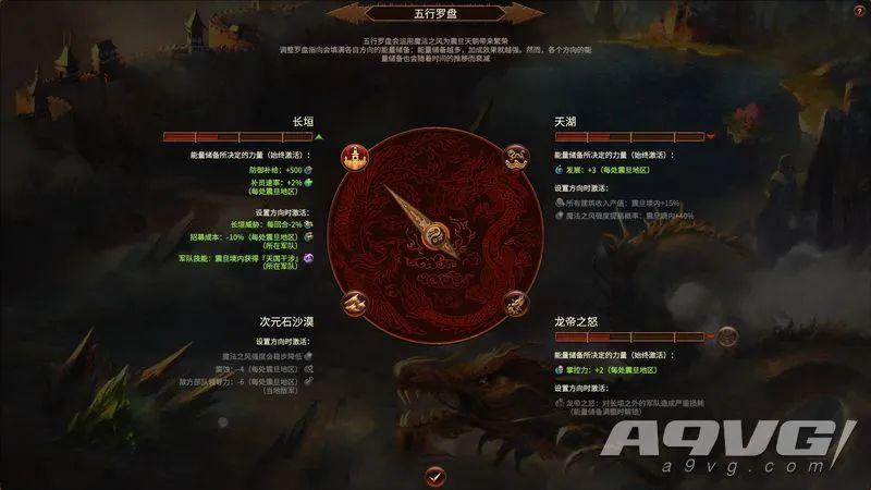 玩家的每一次招募和制造都会影响到阵营里阴阳之间的占比,而如果想要保持整个阵营的最佳状态就要尽可能去全程保持阴阳之间的相互平衡,而在这层基础上“五行罗盘”的加入就成为了另一个需要时刻关注的元素,在战局中五行罗盘可以很直接地为玩家带来一定的全局性增益效果,合理使用可以十分有效地达到调节阴阳之外的强化,也许是为了想向策略性更加靠拢,罗盘拥有一个比较缓慢的生效过程,这无疑需要玩家在每次更改罗盘前都要做出一个提前量的判断,合理规划战局的前瞻考量才能让这两个体系达成最佳的效果。