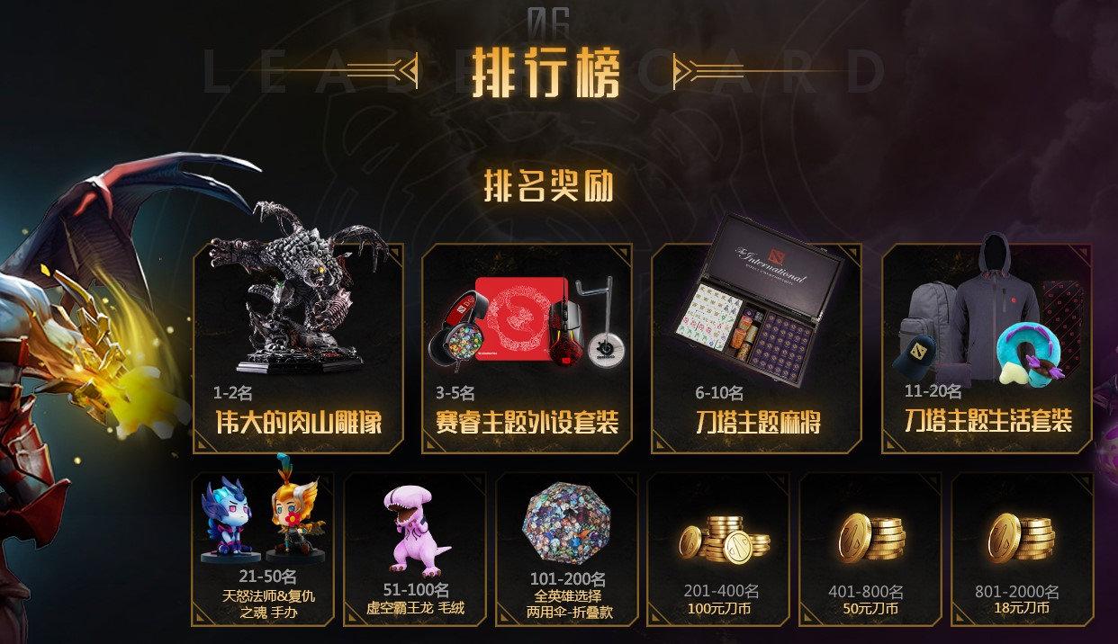 在活动结束时,按照位面精华排行榜的排名,玩家还有机会获得各种奖赏:伟大的肉山雕像、赛睿DOTA2主题外设套装、刀塔主题麻将等一系列DOTA2周边好礼。