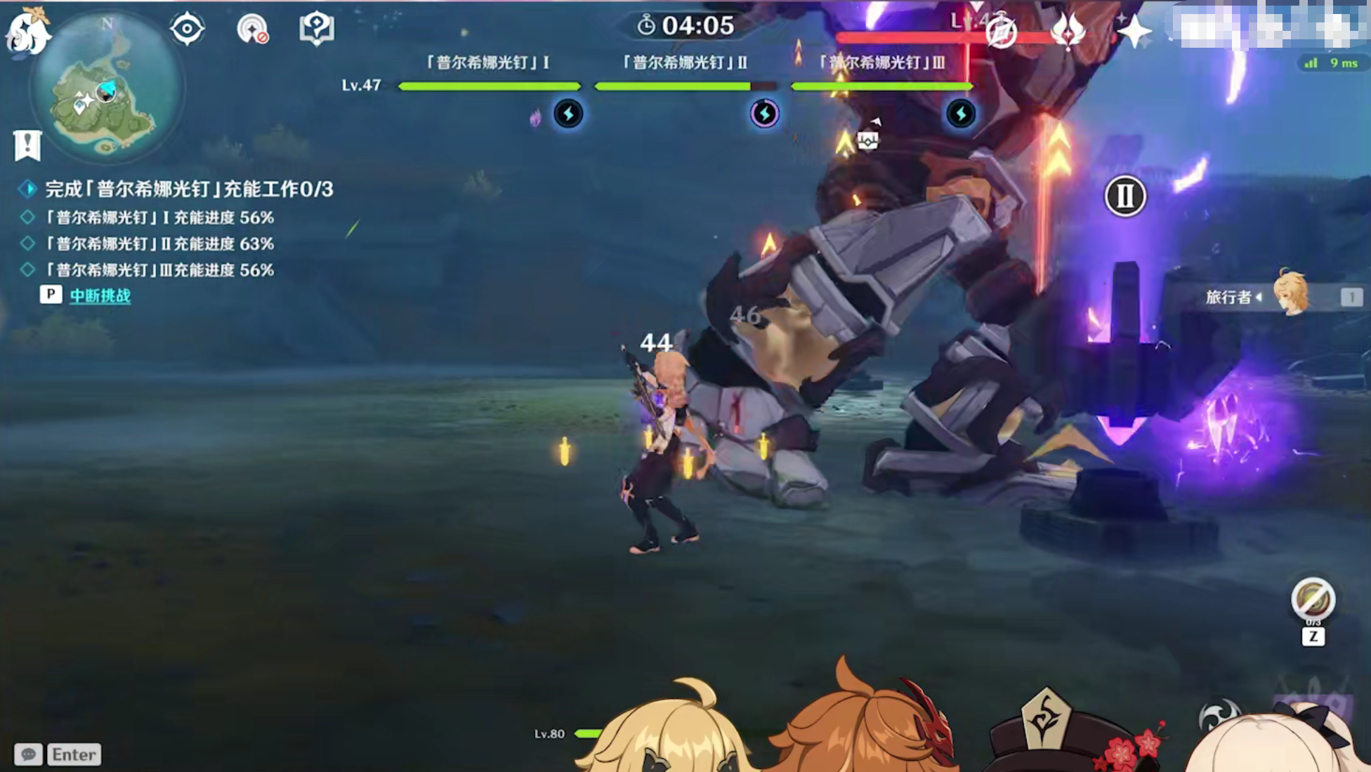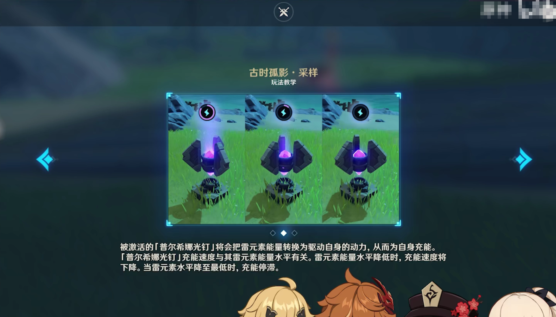 第二阶段:数据采样!获得的古元件,玩家们可拿来修复一个名为,“普尔希纳光钉”的机关,外形还是有很大的不同(中间有一块很大的雷石)。玩家们可用雷元素攻击,进行激活和运转,持续产生能量进行补充(雷系角色不愧是稻妻的主角啊)。不过这一举动会吸引,附近的敌人前来攻击,并且主动破坏普尔希纳光钉,使耐久度降低(下降的速度还算挺快的)。所以玩家们必须要在充能完成之前,将前来的怪物全部击败(暂时拖延时间应该也可以)。从直播前瞻中,可以看到这些怪物阵容的搭配,还是挺不错的(远近攻击全都有),估计打起来会有些棘手。建议玩家们带风属性角色,对它们进行有效的控制。