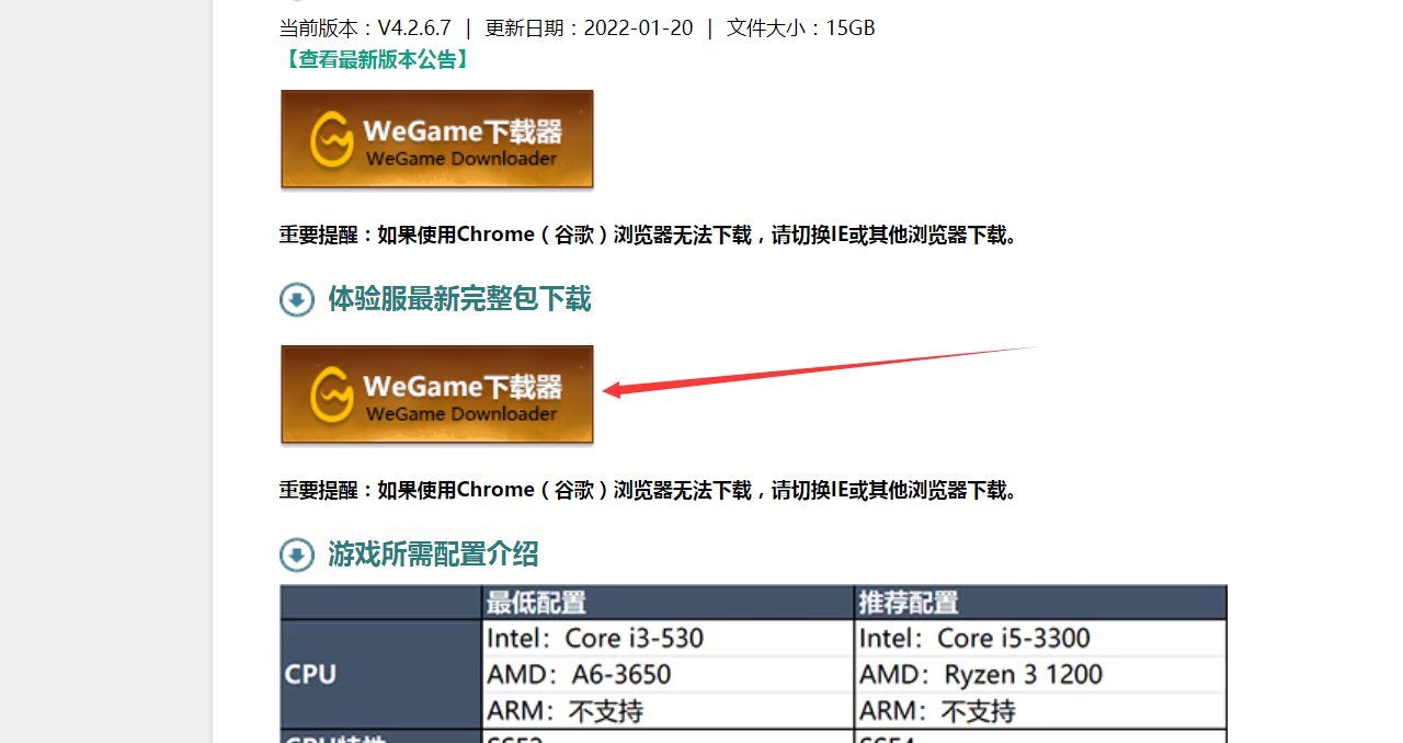 然后点这个WeGame下载器,下载并安装英雄联盟体验服。