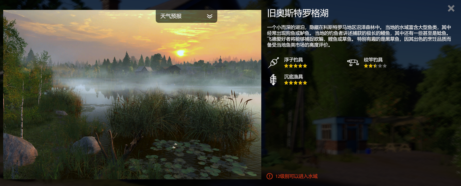 98H到16级图(廓里湖)20级图(沃尔霍夫河)24级图(苏拉河)可以站河边撸单竿撸鱼,也可以去开船拖钓(有2套以上就可以去拖钓,比较有效率)
