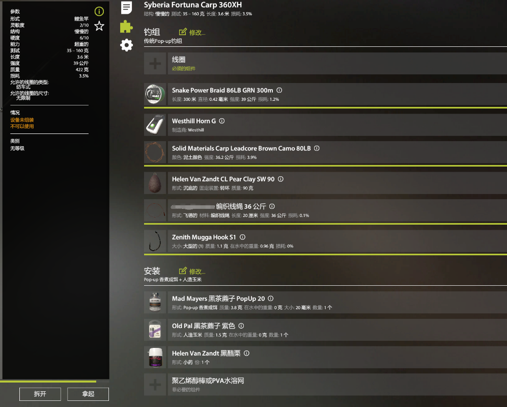 5.海竿路线:购买3套Syberia牌Fortuna Carp 360XH鲤鱼竿和Beluga牌Narga 8000的鱼线轮 合计一套差不多在5000左右
