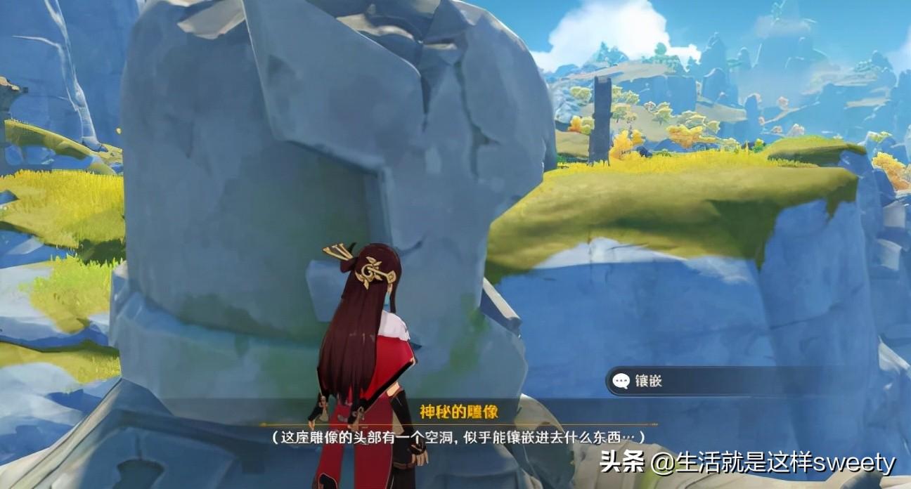 4、两颗珠子都找齐之后就可以把珠子放到遗迹门口的两座雕像头部的缺口里面了。
