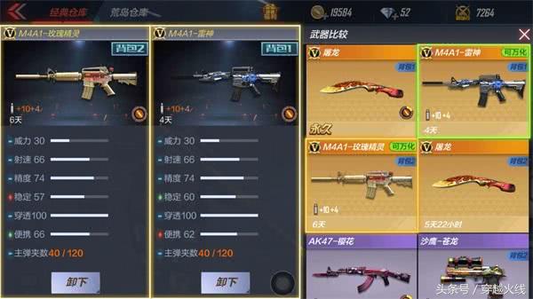 如图,M4A1-玫瑰精灵和M4A1-雷神相比,前者便携程度领先后者,数值为4;后者则在稳定程度上领先前者,数值为3。不过,按实际效用来看,后者更显强势,即:枪械稳定程度直接影响战士的手感和命中精度,两相对比M4A1-雷神更胜一筹。