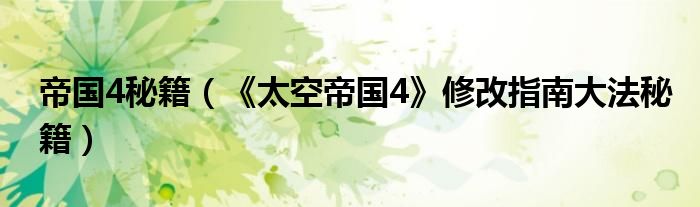 大家好,我来为大家解答以上问题。帝国4秘籍,《太空帝国4》修改指南大法秘籍很多人还不知道,现在让我们一起来看看吧!
