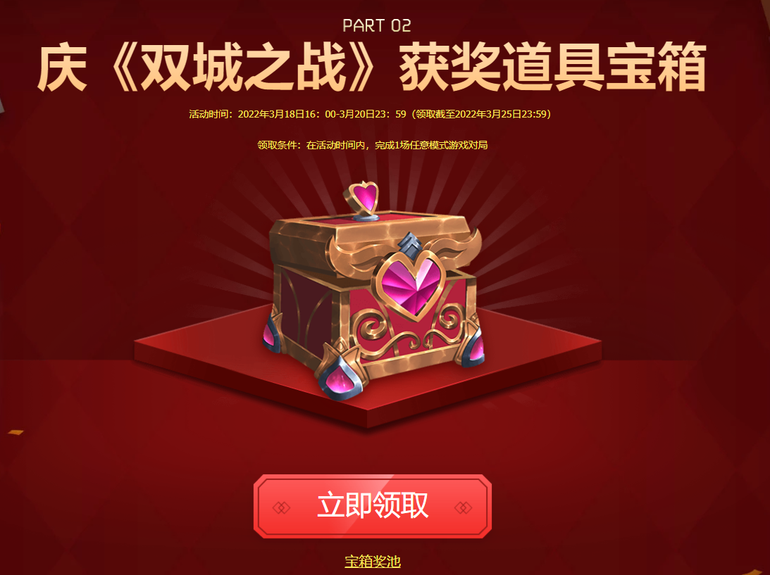 领取条件:在活动时间内,完成1场任意模式游戏对局