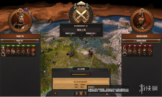 在交战前可以查看双方部队的配置以及实力对比,可根据情况选择自动或手动战斗。