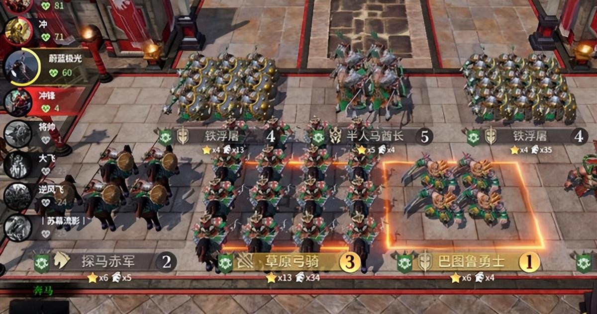 4:蒙古汉子,新手最好别玩,征战模式没有时间限制可以尝试,操作比较繁琐,核心兵种二费骑兵,全程包括后期核心操作就是刷战吼了。