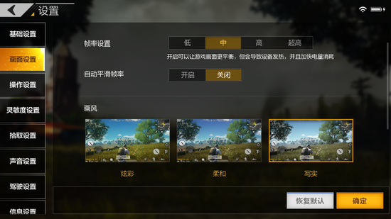 得益于正版授权,《绝地求生:全军出击》中的人物建模、地图整体建模和建筑房屋等都与原作保持了高度的一致,很多细节也都是更加贴近原作效果,且人物动作的流畅性比部分同类游戏要出色,让玩家能有更好的游戏体验。而为了满足不同玩家的配置需求,也设置了多个级别的画质,以及炫彩、柔和和写实三种画面风格可选。