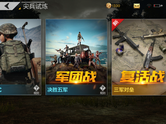 除了匹配赛和排位赛以外,游戏中的尖兵试炼也紧随端游的脚步相应推出三军对垒复活站、军团战决胜五军、天命圈速战速决和专家模式这些娱乐性更强的短时间对战玩法。最新的三军对垒,玩家小队将被随机分配在三个阵营中,在限定区域内进行对抗,跳伞后自动随机获取到不同的武器,而当玩家死亡后将在短时间内被传送回专机上后继续跳伞加入战局,这也使得玩家间的交火冲突更加激烈。