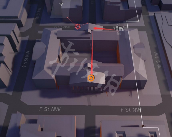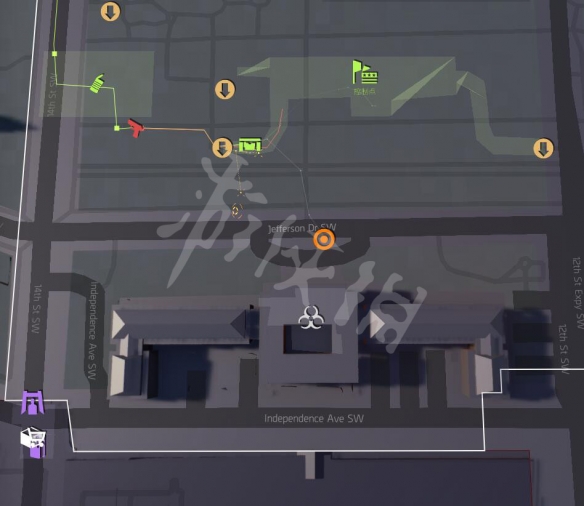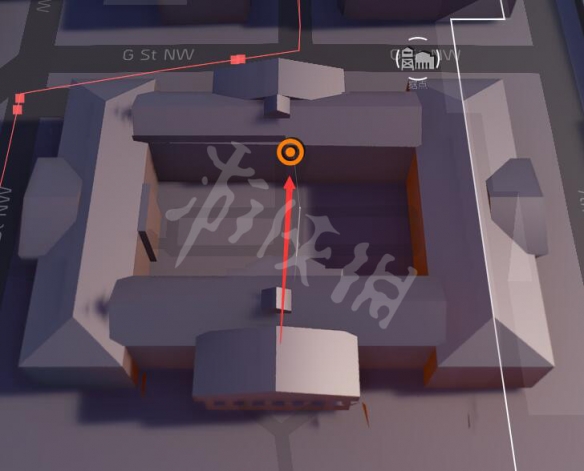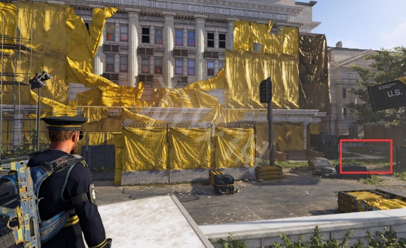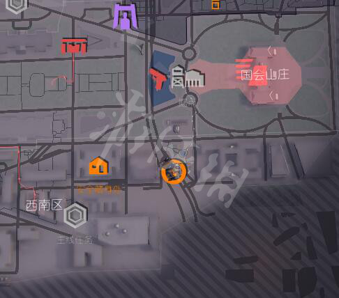 首先打开地图,传送到国会山庄(或西南区藏身处),并找到如下图地点: