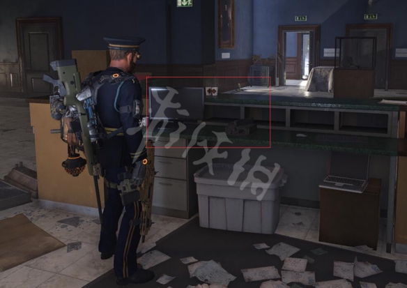找到如下图所示的电脑后按F,然后跑到对面房间的电话前按F,猎人会出现在中间的花园里,需要注意的是两次按F是有时间限制的,按完第一个马上动身去按第二个才行,建议先踩好点再行动。