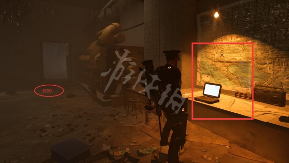 走到附近有ECHO的地方,找到旁边的电脑(没操作的时候电脑上面的地图是暗的)按F操作