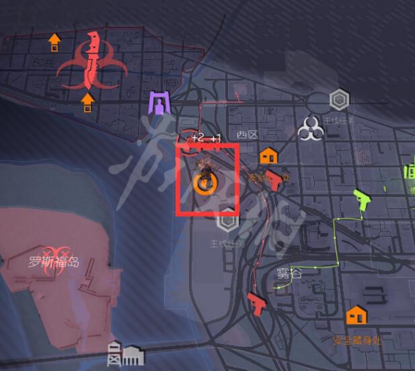 首先打开地图,传送到南暗区-主要入口(或都市废墟控制点),并找到如下图地点: