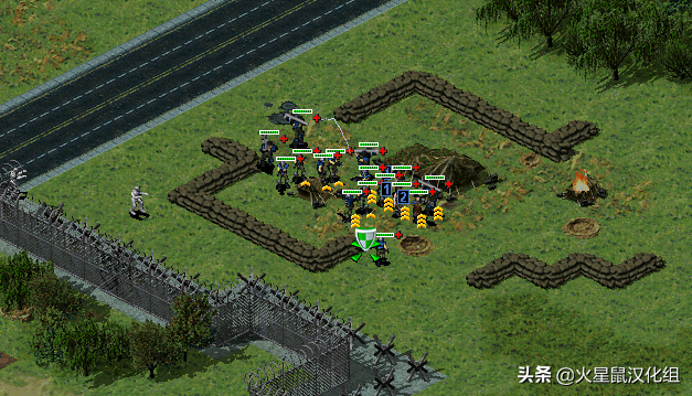 本关真正在地图上游荡的僵尸数量不多,威胁也不大,不过主要的敌人来源都是从地图边缘自动生成的,而且这种生成在生化罐摧毁前不会停止,我已经将生成点用红色五角星标记出来了。要注意的是你的部队会经过这些地方,很有可能会和僵尸群装一个面对面,和僵尸作战最重要的就是射程优势,面对面的肉搏对僵尸来说是绝对优势,也是你损兵折将的最重要的原因,应该离这些地方越远越好。