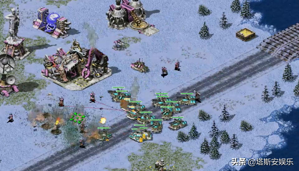8:在被占领的油田附近,可以建造自己的设施,比如兵营、战车工厂等,这样可以发展第二个基地,能防止敌方超级武器毁掉以前的基地,在进攻的时候,也可以大大减少部队的移动时间。