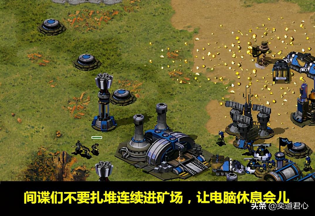 利用间谍偷矿不仅是盟军阵营的游戏玩家百试不爽的行动,更是所有红警玩家都知道的公开秘密。不少的朋友在我的文章下面留言,吐槽自己的间谍就是第一个进矿场的得钱多,再往后能够取得的资金就很少了,其实这就是他们杀鸡取卵太急躁了。韭菜割了第一轮你总得等它们再长高才能继续割吧,电脑的矿场同样需要休养生息恢复储量。第一个间谍偷了大几万,后面的同伴就找个凉快地方多待一会儿,等对方的矿车往返装卸了几十趟再继续嘛。