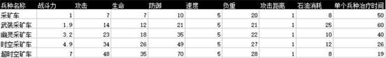 采矿车从低到高可以分为五个等级,为了让大家更直观的看到这个兵种的属性,我们通过一张图了解一下: