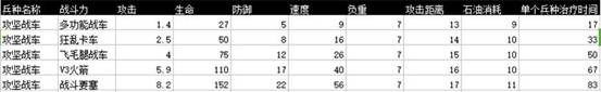 攻城车从低到高可以分为五个等级,为了让大家更直观的看到这个兵种的属性,我们通过一张图了解一下: