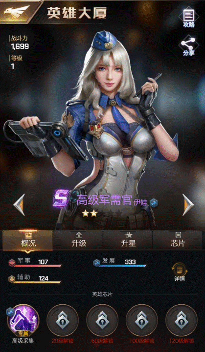 1、S级别高级军需官伊娃的专属技能【高级采集】,和资源采集累的芯片效果,都能在她带队采集的时候,加快采集速度。