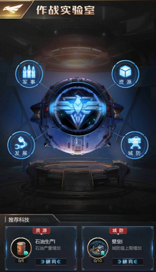 2、作战实验室右上方的【资源】里,有很多相关的科技树,选项相应的系列科技进行提升,也可以大幅增加采集速度。
