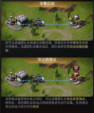 开采野外资源点除了直接对无主的资源点发起开采命令,指挥部队去开采指定的资源点,还可以向已有其他指挥官驻兵的资源点发起进攻。在《红警OL手游》中,在资源点发生的战斗不计其数,这也说明中后期去开采野外资源点时,一定要带够兵力守护。