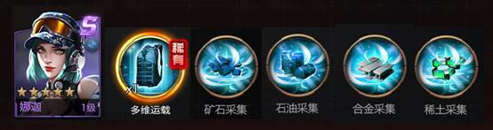 娜迦作为矿车指挥官,出征采集时最高提升采集速度8.16%,拥有专属技能【高级采集】,最高可提高采集所有资源速度36.72%,可携带下图五个芯片。