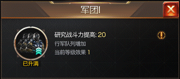 在作战实验室中,研究军团可以增加行军队列。当建造作战实验室后跟随系统提示研究了军团,就能增加一个队列。通过对军团科技的研究,指挥官最多可以有五个队列。兵力充足的时候,指挥官也可以双线操作,派出两个队列去采集资源,把资源的获取达到最大化。