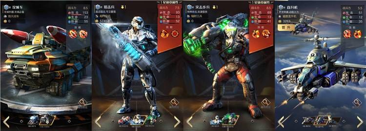 (上图兵种顺序依次为攻城车、狙击兵、突击步兵、直升机)