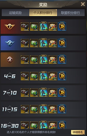 积分排名奖励:活动期间,还会根据指挥官个人排名和所在联盟排名的情况获得额外的排名奖励哦~