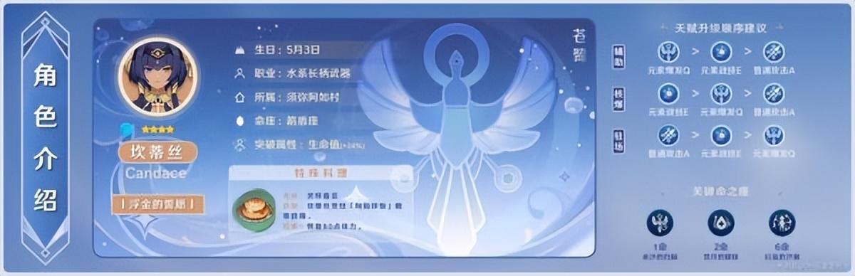 坎蒂丝是《原神》3.1版本中的新增角色,它的定位是水元素辅助角色,并且开启大招后会给队友提供水元素的伤害加成。下面请看《原神》3.1坎蒂丝玩法介绍,希望对各位玩家有帮助。