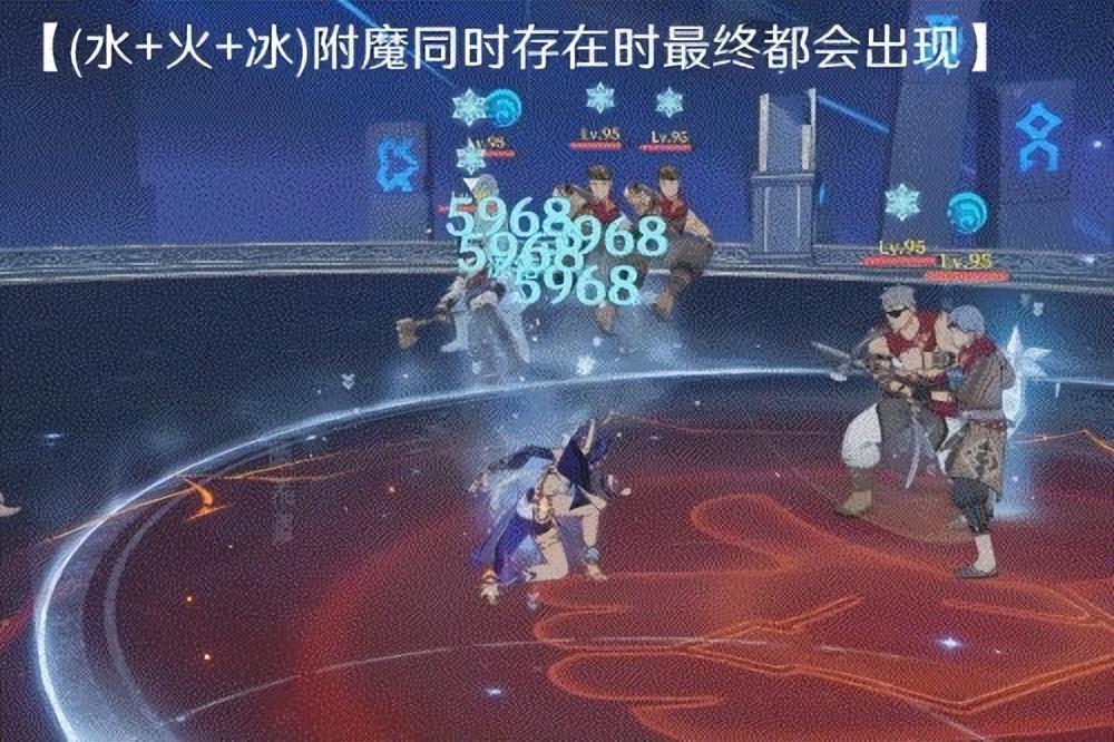 队伍中存在3种或以上的不同元素附魔(水元素必须不存在),最终呈现会按照火>冰>雷。