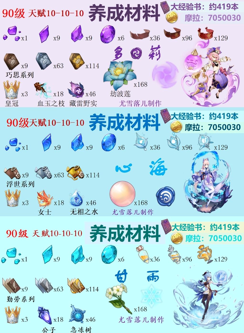 旅行者们好,好久不见,我是up主尤雪落儿,今天给大家带来一篇关于多莉、心海、甘雨突破材料整理的文章。