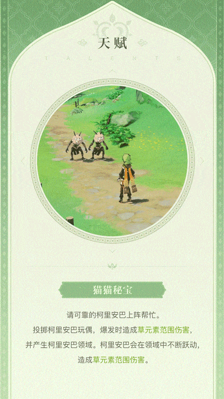 只要队伍中携带了可以和草元素发生反应的队友,这一点对于柯莱来说非常容易触发,而且相当于额外释放了草元素环境,倍率给的比较低,主要也是引导玩家多触发一点草元素反应。