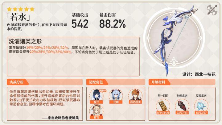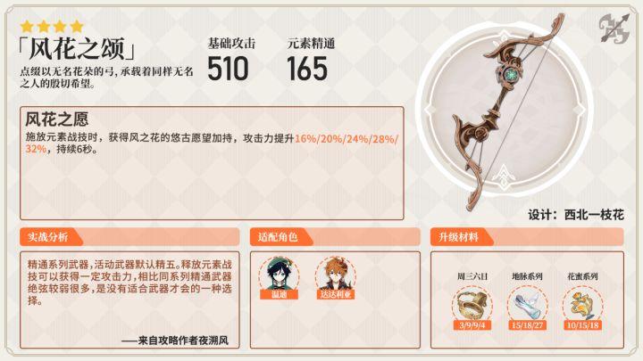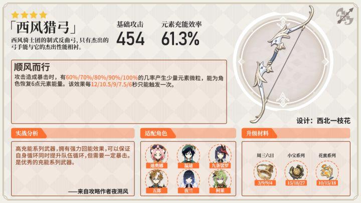 需要一定暴击率可用。为全队提供充能循环加成,是万金油武器,在任何场景下可用,唯一的缺点是会丢失伤害。