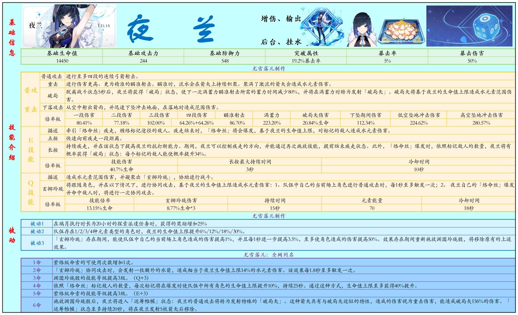 旅行者们好呀,我是up主尤雪落儿,今天给大家带来一篇关于夜兰武器、圣遗物、阵容的攻略文章。