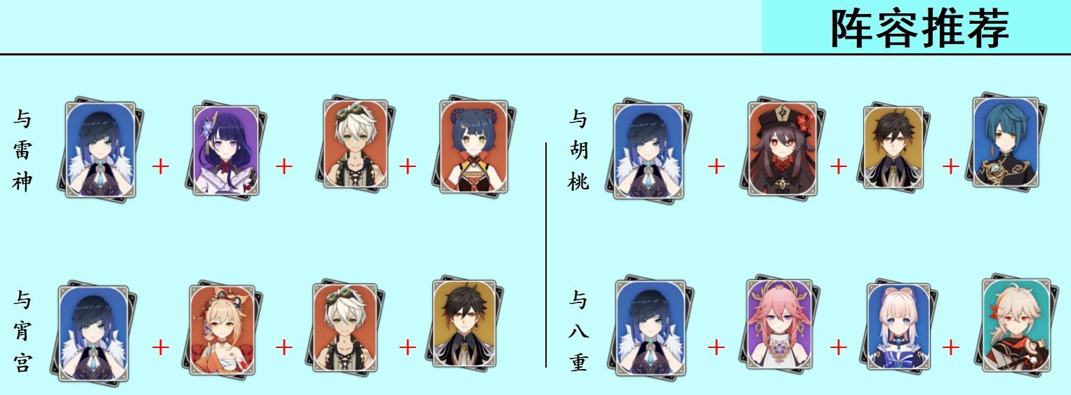 其他队伍:除了上述几个队伍外,夜兰也可以和迪卢克、刻晴、可莉等角色组队,但由于泛用性等原因,我就不多说了。