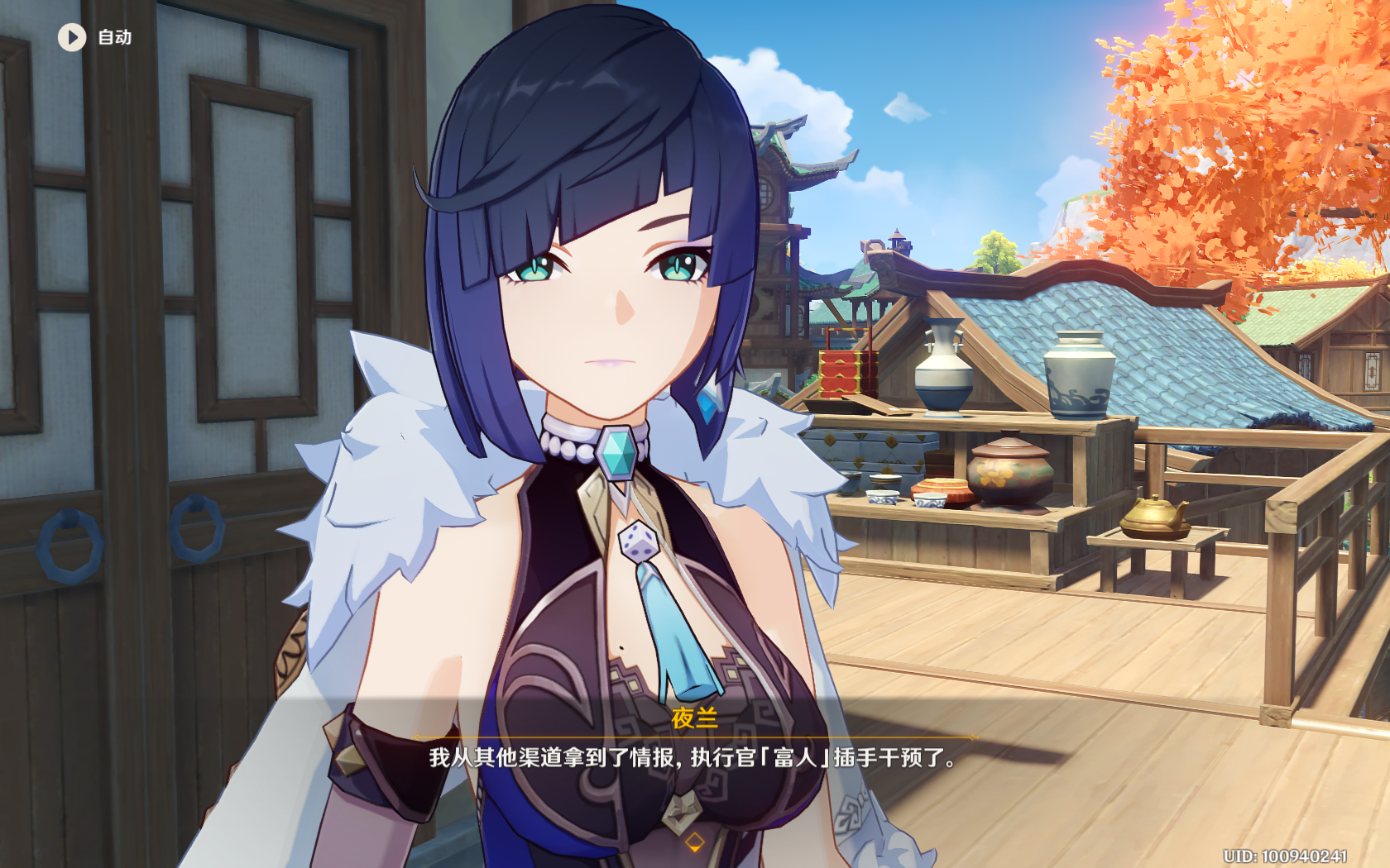 在完成危难疑踪与甘雨传说任务后,就可以开启夜兰传说任务了。虽然这次没有华丽的过场cg,但后半段的剧情还是相当精彩的,愚人众执行官富人的名字也出场了下,算是夜兰的死对头了。