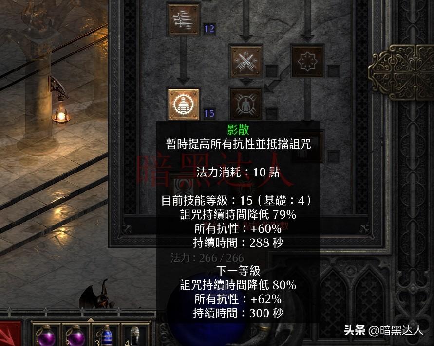 “能量消解”(影散)是刺客的一个技能,施展后角色会变透明,15级效果为:诅咒时间降低79%、所有抗性提高60点和15%的物理免伤(技能说明未显示但实际有这个效果)。可见装备了“背信”的佣兵在触发“能量消解”后生存能力将大幅提升。