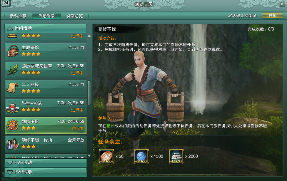 剩下的pvp与pve玩家都可以参与,门派日常可以获得监本,监本可以在帮会里购买到各职业的全部秘笈,有部分秘笈只有帮会商店才有,所以监本还是很有用的。