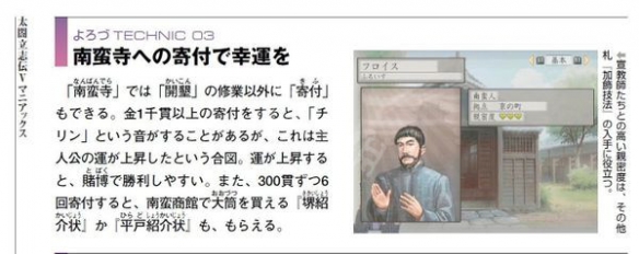 去南蛮寺捐钱超过一千贯有机会听到特殊的音效主角的运气会一时上升。