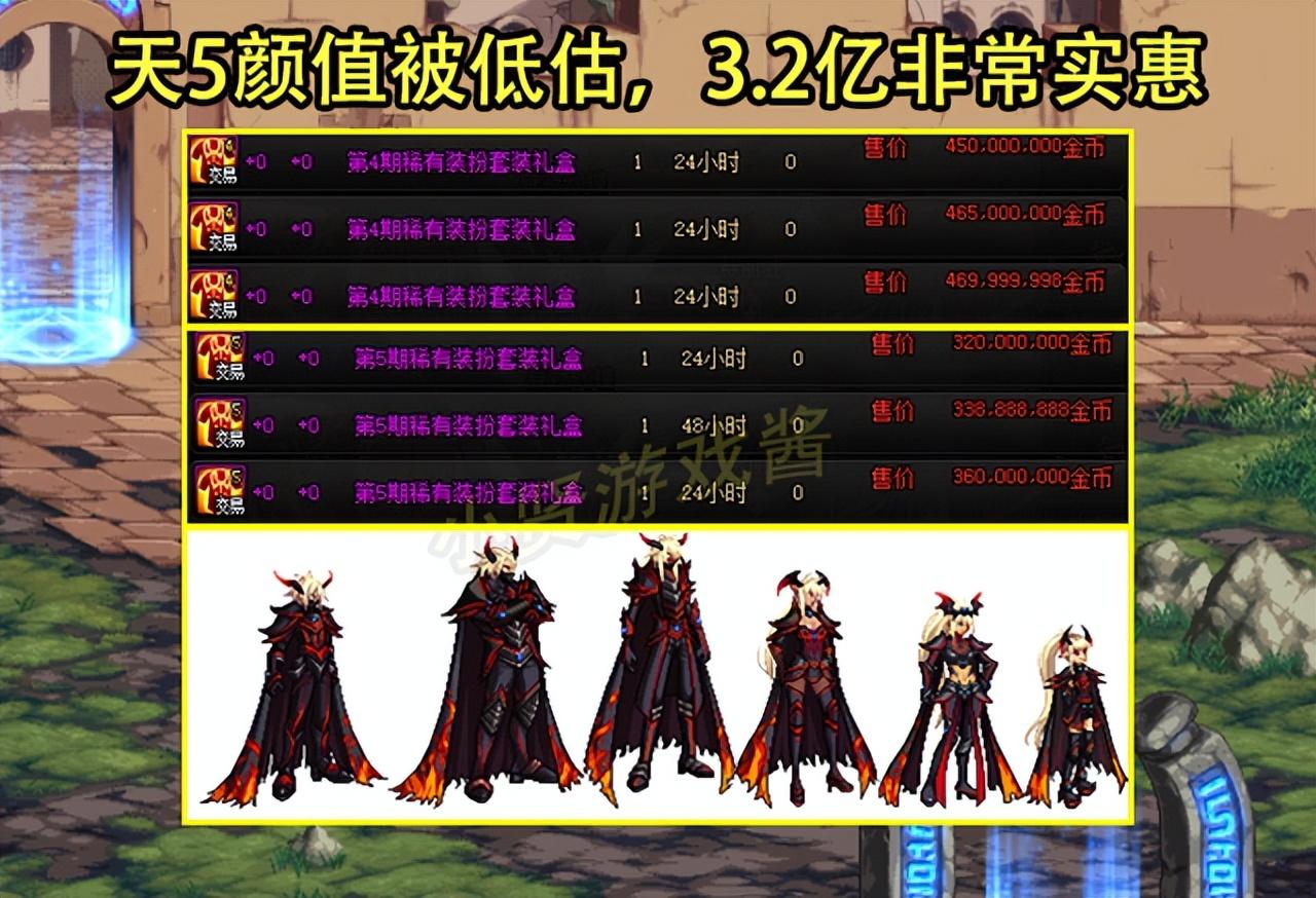 首先,作为国服的第一套天空冥域天空,目前拍卖拥有的数量非常稀少,售价为11~12亿之间,虽说天1很有纪念价值,屎壳郎、鸟人套很经典,但是这个价格肯定是不值得购买的,6~7亿可以考虑。