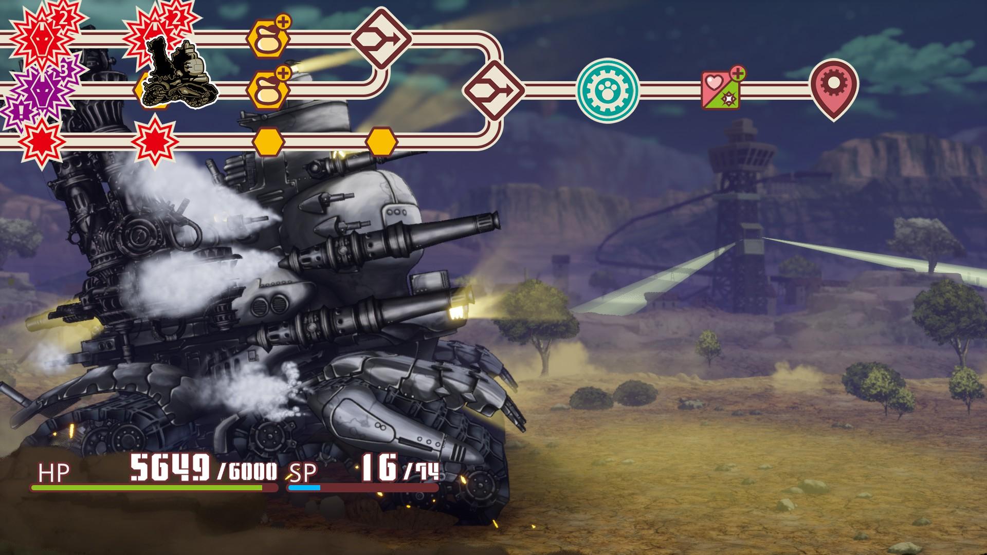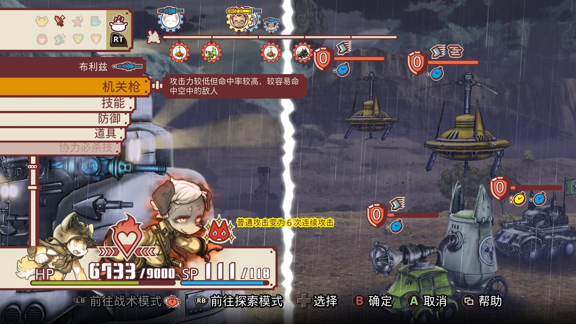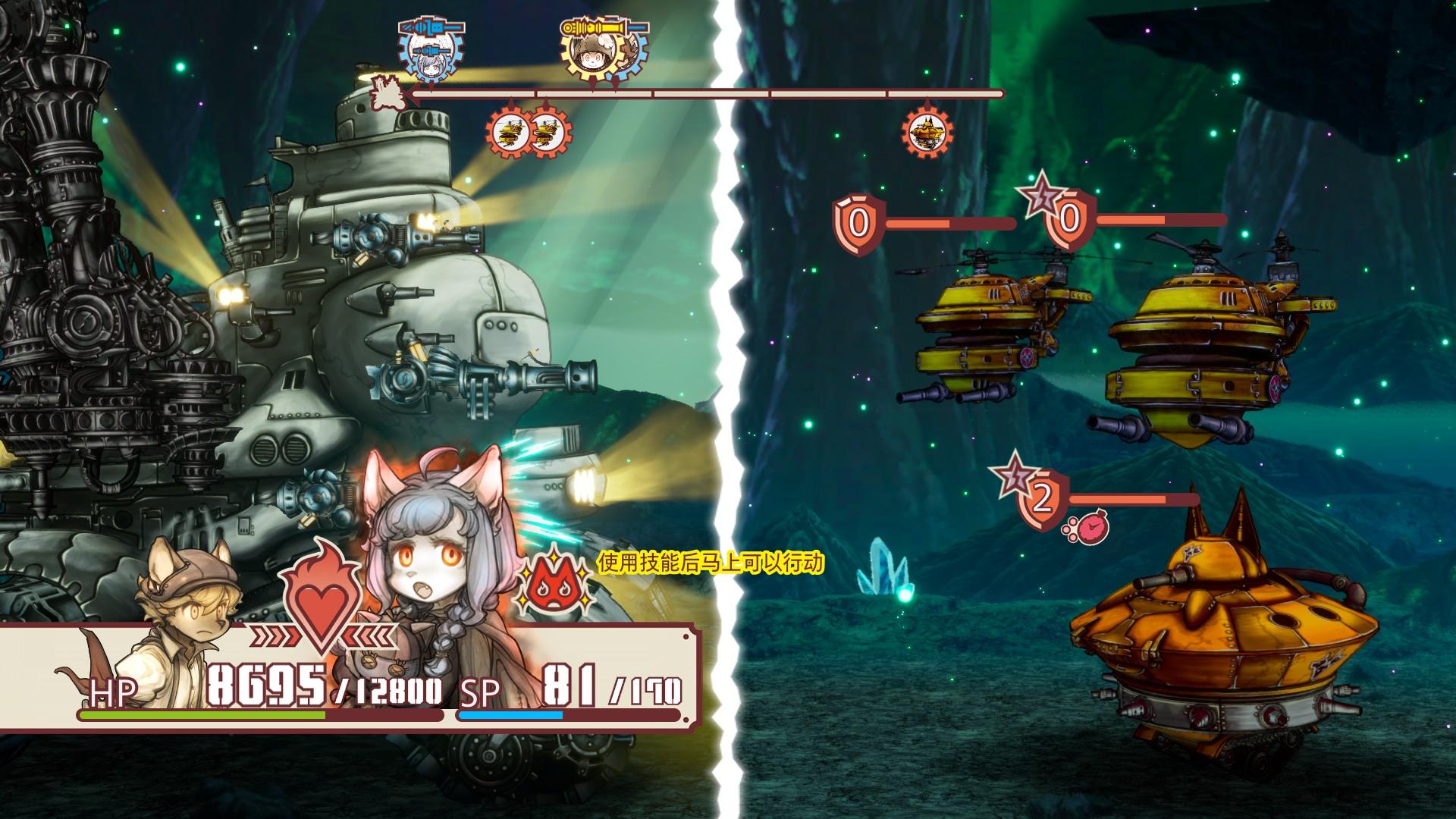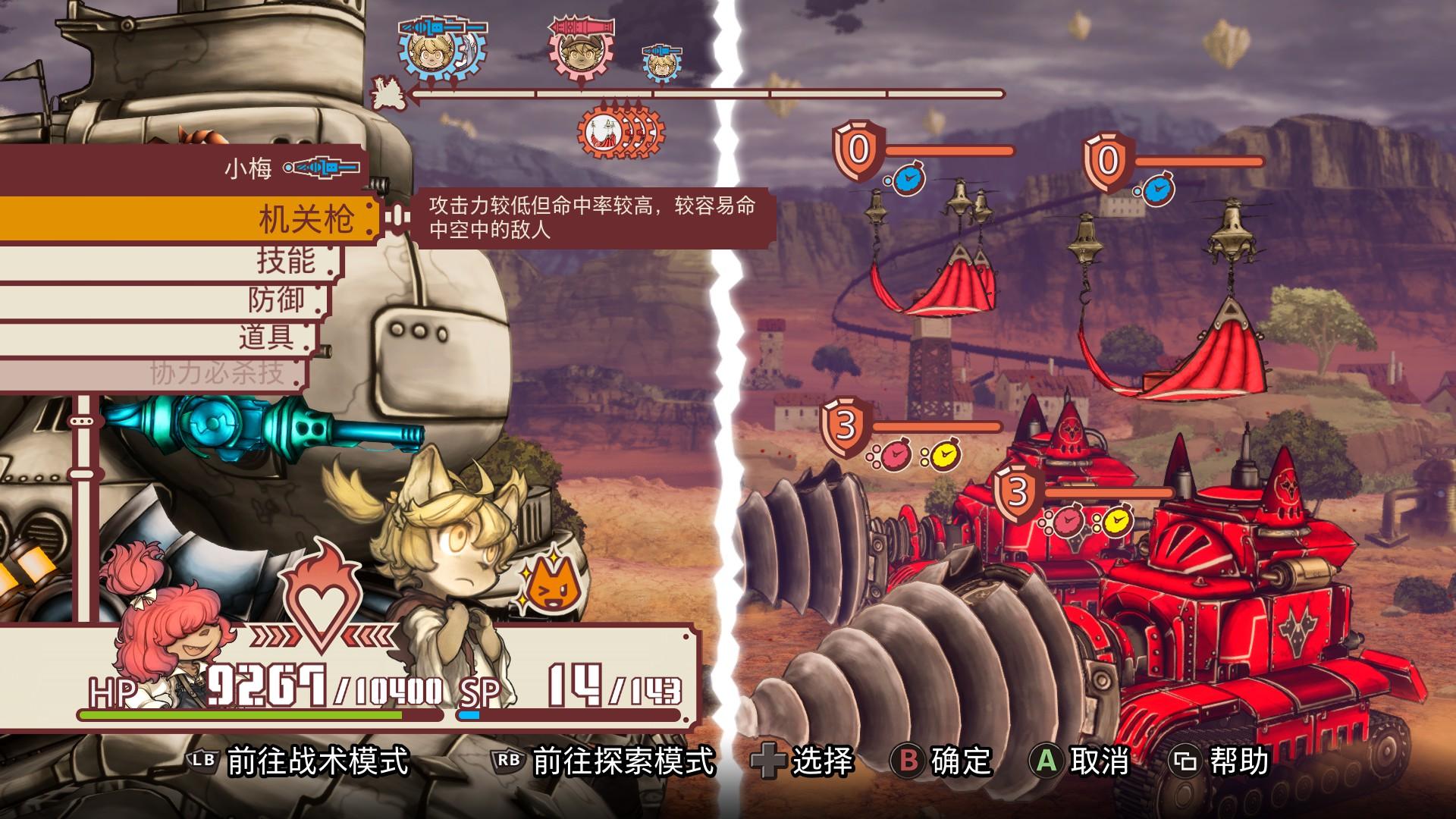 后期的敌人在不断变强的同时,还会增加各种各样的花样。比如有前两回合就蓄力放大招附带受伤状态的钻头战车,因为受伤状态实在太麻烦了所以我遇到这种敌人基本都会优先解决;还有残血了放愤怒以及明明满血却要给其他队友放愤怒的战车,让我不得不战战兢兢地打完这个明明看着不费力的战斗;此外还有能变迫击炮的、乌龟变大炮的、附带舰桥修战车的,直到最后都让我保持着一定的新鲜感。
