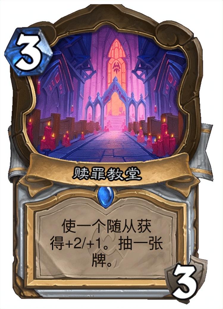 前中期对局主要以站场打节奏为主,赎罪教堂这张卡能为我们的随从提供buff,同时稳定抽卡提供较为扎实的手牌资源,在前中期对局中完全不用担心资源短缺的情况发生。这套卡组前中期站场卡牌并不多,所以尽可能用赎罪教堂扩大优势才是王道。