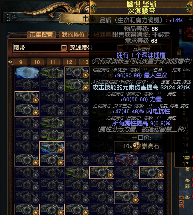 学学做装备,保你学会都不用上班了,这里面在地图能站住脚,好的装备才是根本,高手是靠做装备来卖能大赚。我们不能做极品装备,低端用量大的一样可以做,比如说腰带,前期的深渊腰带,一血加双抗就很好卖,而且深渊腰带是前期过度的必须品。抓住前一个月的时间通过化石或者精华都可以快速做出。出个一血加三抗或者一血加双抗再加一高力量,就算是极品了,当然属性数值越高越好。不要追求极品,有利润就卖。